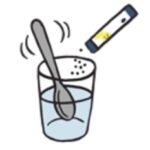 とろみ剤を入れたら、すぐにかき混ぜるようにしてください。