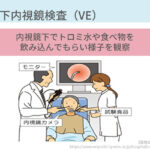 内視鏡で観察しながらトロミ付きの水、ゼリー、実際の食事などを飲み込んでいただきます。食物の摂取状況に応じて姿勢・食物形態・一口量の調整を行います。食物の咀嚼状態・残留の有無、気管への流入の有無などを確認できます。検査はベッドサイドで行うことができ、所要時間は30分程です。