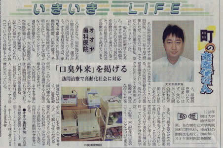 2025.09.09 2008年7月13日に中部経済新聞の取材を受けました! オオヤ歯科医院の口臭外来、超精密義歯、訪問歯科についての取材記事です! 2008年6月3日放送 テレビ愛知「セカンドコール」出演! 前の記事 女性自身 2009年3月3日号に掲載されました! 次の記事