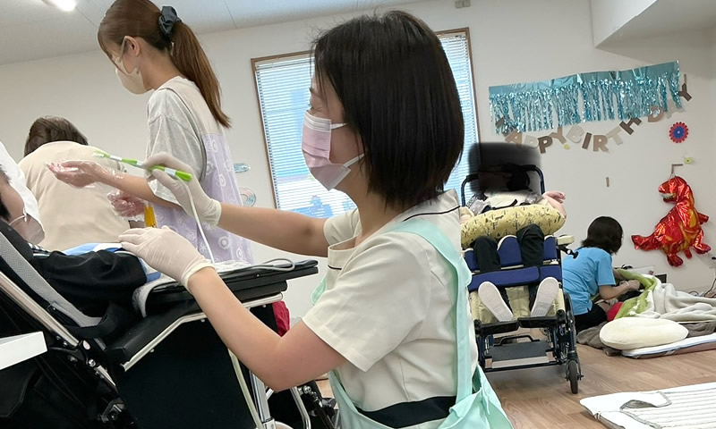 私たちは、お子様が普段過ごしているデイサービスなどの施設へ直接お伺いし、これまで多くの医療的ケア児の歯科検診等に携わってまいりました。